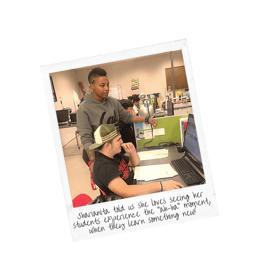 “Everyone I’ve ever come into contact with has impacted my life and gotten me where I am today. All of my teachers growing up and the teachers and administrators I work with today,” Sharianita said. “One of my current administrators, Mr. Dameon Blair in particular, is always helping me get better, and he supports his educators in a way that allows us to be ourselves and lead with confidence.”